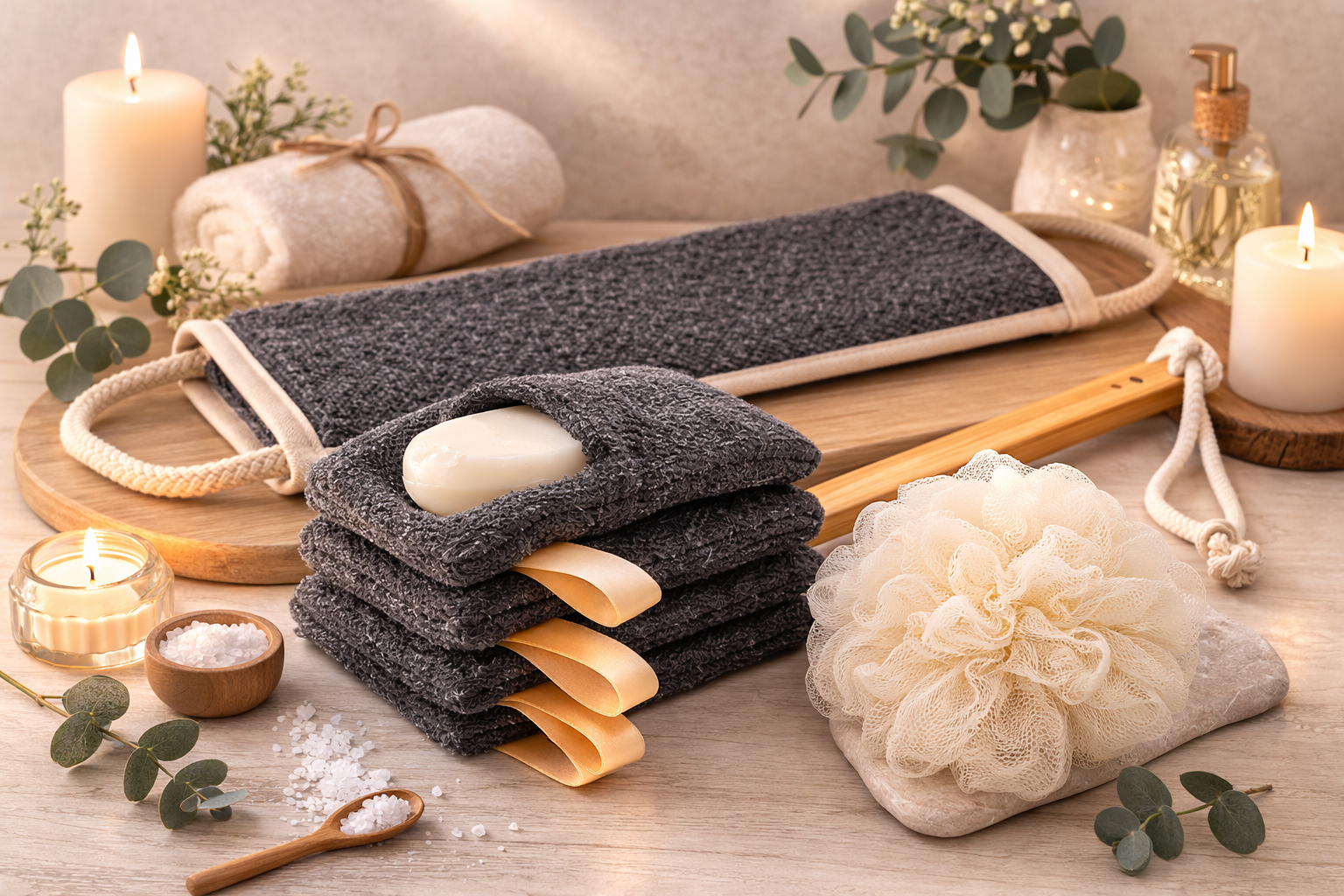 Made from durable, high-quality materials, this bath accessory set is built to last. Whether you’re looking to improve your skincare routine or simply want an easier way to stay fresh and clean, our product is here to serve. Each piece in the set is lightweight and easy to rinse, ensuring they remain hygienic and ready for use. Additionally, it’s compact and travel-friendly, making it a great choice for vacations or gym sessions.